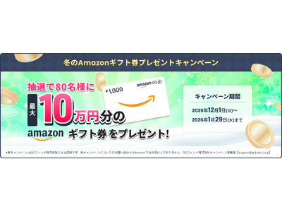 GOファンド株式会社は、2025年12月1日より、「抽選で80名様に最大10万円分のAmazonギフト券をプレゼントするキャンペーン」を開始しました。