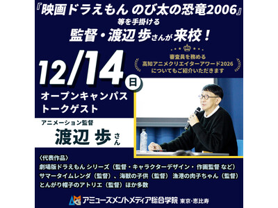 『映画ドラえもん のび太の恐竜2006』等のアニメーション監督・渡辺 歩さん来校!審査員を務める〈高知アニメクリエイターアワード2026〉についてもご紹介【12/14(日)】開催