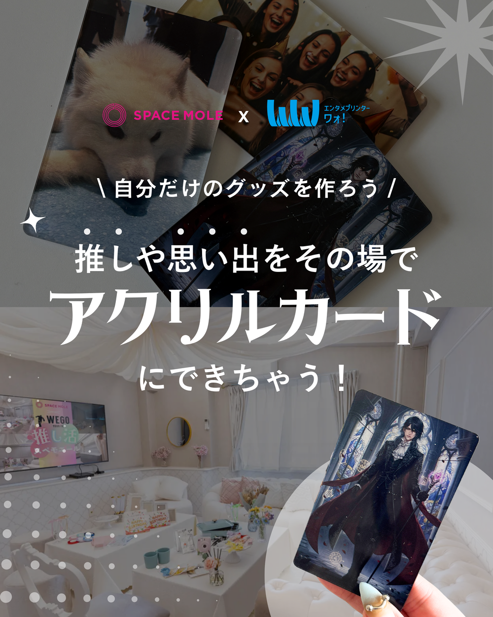 スペースモールのSpemoYELLは、ファンたちが自由にグッズ制作や展示、撮影などを楽しみ、仲間との交流を通じて特別なひとときを共有できるリアル空間として人気を集めています。ここに、WoW!のアクリルグッズ制作が加わることで、推し活ルームがファンにとって「来る」だけでなく「作る」「体験する」場所として、新しい体験価値が生まれます。