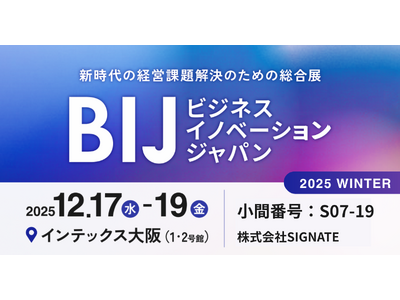 AI活用の戦略策定から実行、人材育成までを一気通貫で支援する株式会社SIGNATE(本社:東京都中央区、代表取締役社長:齊藤 秀、以下「SIGNATE」)は、2025年12月17日(水)から12月19日(金)にインテックス大阪にて開催される「ビジネスイノベーション Japan 2025 冬 大阪」に出展いたします。