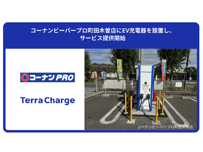 電気自動車(EV)向け充電サービス「Terra Charge(テラチャージ)」を展開するTerra Charge株式会社(本社:東京都港区、代表取締役社長:徳重徹、以下、当社)は、コーナン商事株式会社(本社:大阪府大阪市淀川区、代表取締役社長:疋田直太郎)が運営する「コーナンビーバープロ町田木曽店」(所在地:東京都町田市木曽西3丁目26ー7)へ120kW出力の急速充電器のEV充電器を2口設置し、サービス提供を開始いたしました。