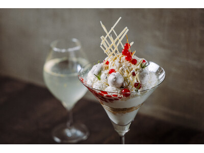 北海道産クリームチーズを使用した濃厚なムースにミルクのムース、丁寧に焼き上げたバニラメレンゲを合わせ、ホワイトチョコの雪を降らせた白いパフェ。赤く甘酸っぱいグロゼイユをアクセントにゆずの香りをまとわせたクリームがマリアージュする上品な味わいのチーズケーキのようなパフェをお楽しみください。