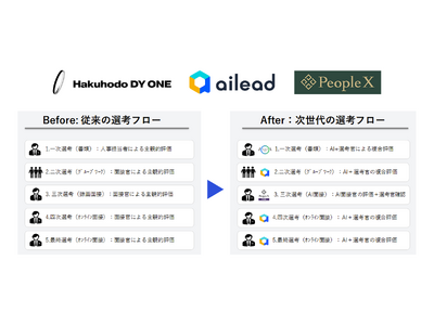 株式会社Hakuhodo DY ONE(本社:東京都港区、代表取締役会長:田中雄三 代表取締役社長:小坂洋人、以下 Hakuhodo DY ONE)は、株式会社ailead(本社:東京都港区、代表取締役:杉山大幹、以下 ailead)および株式会社PeopleX(本社:東京都新宿区、代表取締役CEO:橘大地、以下 PeopleX)と連携し、2027年新卒採用選考より、全選考プロセスにAIを活用した新しい新卒採用を開始します。当社は、AI活用の最前線に立つデジタルマーケティング会社として業界をリードし、社内でも早期から生成AI活用を実現しています。本取り組みは、当社独自のAIエージェント型マーケティング支援サービス「ONE-AIGENT」に関する事業展開の一環として、バックオフィス部門におけるAI活用を推進します。※1