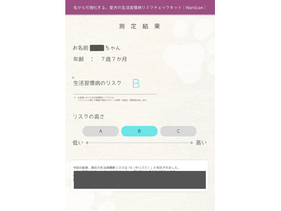 愛犬用健康検査キット「WanScan」体毛から生活習慣病リスクをチェックする愛犬用健康検査キットです。 抗炎症にかかわるホルモンを定量測定することで生活習慣病のリスクを判定します。
