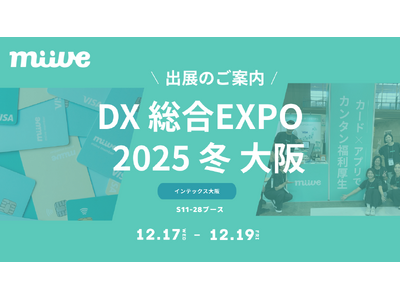 株式会社miive(本社:東京都渋谷区、代表取締役CEO:栗田廉)は、2025年12月17日(水)~19日(金)の3日間、インテックス大阪(大阪府大阪市)で開催される「DX 総合EXPO 2025 冬 大阪」に出展いたします。
