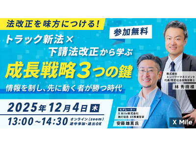 トラック新法×下請法改正から学ぶ成長戦略3つの鍵~情報を制し、先に動く者が勝つ時代~」を実施することをお知らせいたします。
