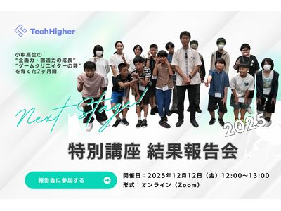 おもしろいゲームの考え方と進め方」の結果を公開する「特別講座 結果報告会 2025」をオンラインで開催します。本講座は、元・任天堂ディレクター毛呂功氏によるゲーム制作について体系的に学ぶ7ヶ月間のワークショップとして開催され、全国から150名の小・中・高校生が参加しました。