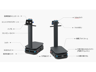 <昇降(Visual SLAM)> カメラの映像で周囲の環境を認識にながら自己位置測定と地図作成を同時に行う技術。これによりマッピングにかかる時間を短縮することができ、ロボット設定時間も短縮できます。
