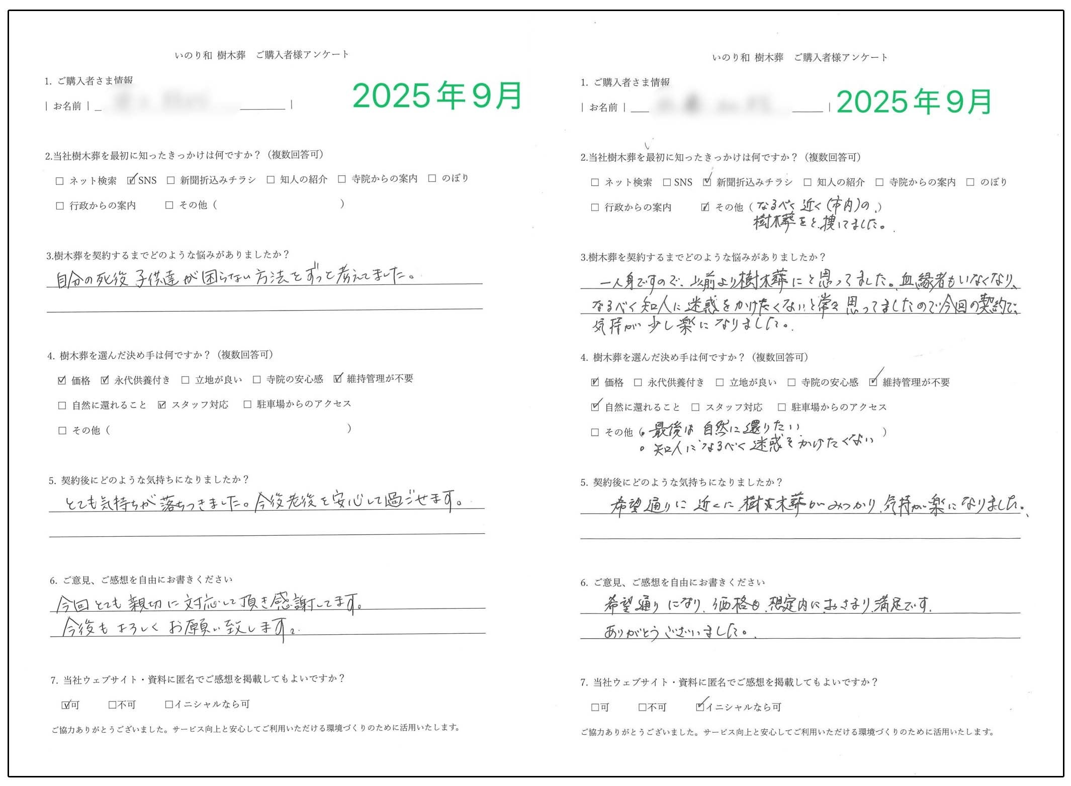 契約者様からのアンケート