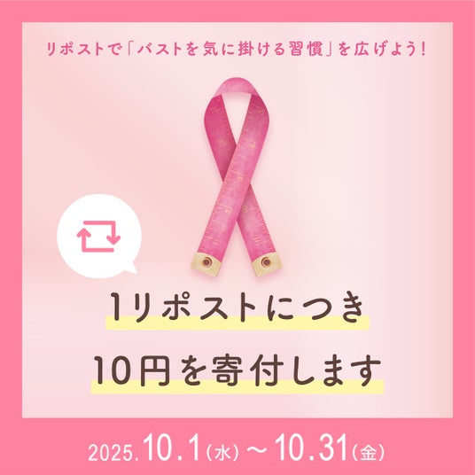 ワコール企業公式Xからの「#ワコールピンクリボン」を含んだキャンペーン投稿をリポストしていただくと、1リポストにつき10円をワコールからピンクリボン活動団体(※1)へ寄付します。
