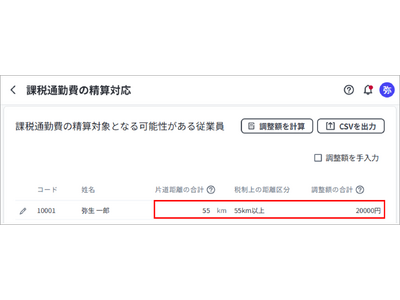 給与計算における通勤手当の非課税計算についても、改正後の非課税限度額に既に対応しています。従業員の通勤経路に交通用具と片道距離を設定していると、片道距離と改正後の非課税限度額に沿って自動計算されるので、お客さまで通勤手当の非課税計算を行う必要はありません。