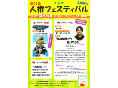 「私は部落から逃げてきた」と題した講演や、人権啓発に関する展示、ご当地ヒーローショーなどを開催します。