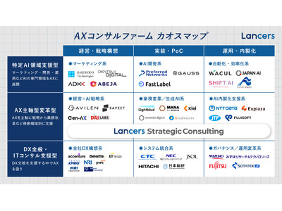 人とAIが協働する社会の実現に向けてAX(AIトランスフォーメーション)を推進するランサーズ株式会社(本社:東京都渋谷区、代表取締役社長 CEO:秋好 陽介、東証グロース:4484、以下「ランサーズ」)は、AI導入やAIによる業務改革を支援する国内主要コンサルティング企業41社を整理した「AXコンサルファーム カオスマップ2025」を公開いたしました。