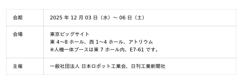 ■ 2025 国際ロボット展 (iREX2025)概要