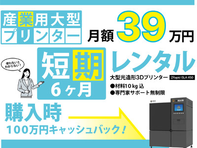 購入検討企業が抱える「高額な産業機器を、自社環境で十分に試せない」という課題を解消するために開発されました。本サービスでは、高精度な造形が可能な光造形(SLA)方式の大型機「ZRapid iSLA450(以下、iSLA450)」を6ヶ月間お貸し出しし、実機検証をサポートします。