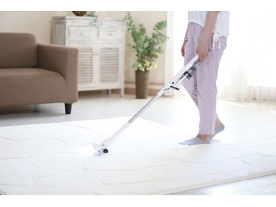 本製品は、1.05kgの軽量ボディと扱いやすい自走式ヘッドで、日常の掃除をより手軽に行えるスティックタイプのコードレスクリーナーです。ごみを巻き取りやすいパワーブラシと、吸引力が持続しやすいダブルサイクロン方式を採用することで、軽量ながらハイパワーな吸引力を実現しました。
