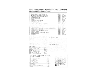 パパやママや祖父母が今年のクリスマスプレゼントとして、お子さんやお孫さんに贈りたいおもちゃを投票して決める「お子さんやお孫さんに贈りたいクリスマスおもちゃ2025」の結果が12月2日に発表された。