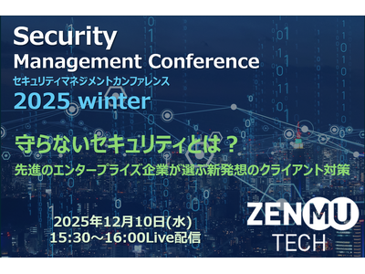 情報を暗号化した上で分散管理する「秘密分散技術」によりデータの保護、データの利活用を追求する株式会社ZenmuTech(ゼンムテック、以下、ZenmuTech、代表取締役社長CEO:阿部 泰久、本社:東京都中央区、証券コード:338A)は、2025年12月10日(水)に、SBクリエイティブ株式会社(ビジネス+IT)主催「Security Management Conference 2025 Winter」にて講演を行います。