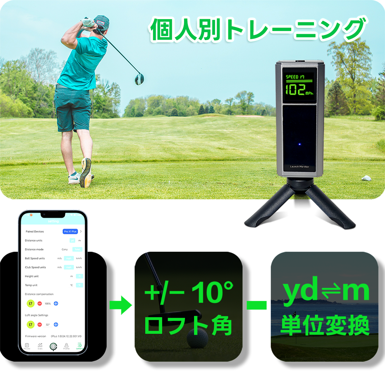 飛距離の補正値やクラブフェース角を微調整でき、これまで以上に正確なデータを計測できます。