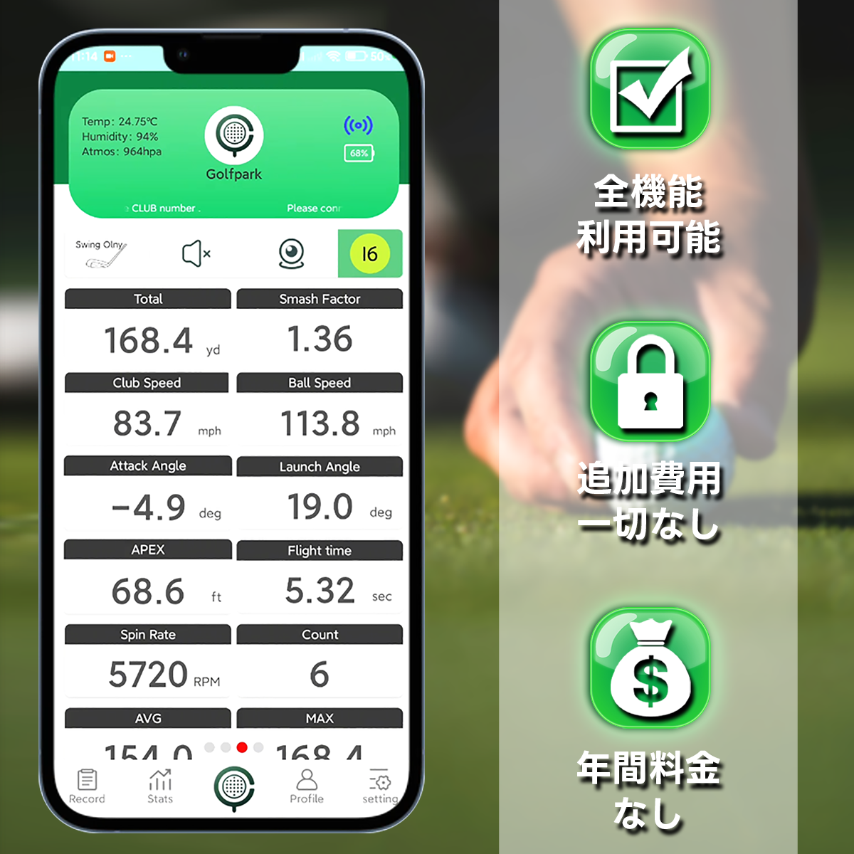 高精度ローンチモニターです。練習場でも、自宅の庭でも、
