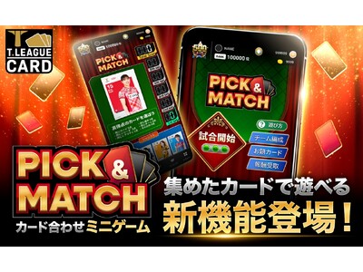 Tリーグの公式デジタルトレーディングカードサービス「T.LEAGUE OFFICIAL DIGITAL CARD」(以下、Tリーグカード)では、これまでカードのコレクション、マイチーム編成、ユーザー間トレードなどでお楽しみいただいておりましたが、この度、カードの新たな価値と遊び方を提供する新機能として、新たなミニゲーム機能「Pick&Match」が追加いたしました。