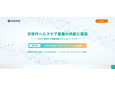 株式会社エイジェック(本社:東京都新宿区)は、企業の健康経営推進担当者、メーカー・研究機関、スポーツ団体などを対象に、無料オンラインセミナー 「次世代ヘルスケア産業の共創と実装 ~PHRで加速するウェルビーイング~」 を2025年12月10日(水)に開催いたします。