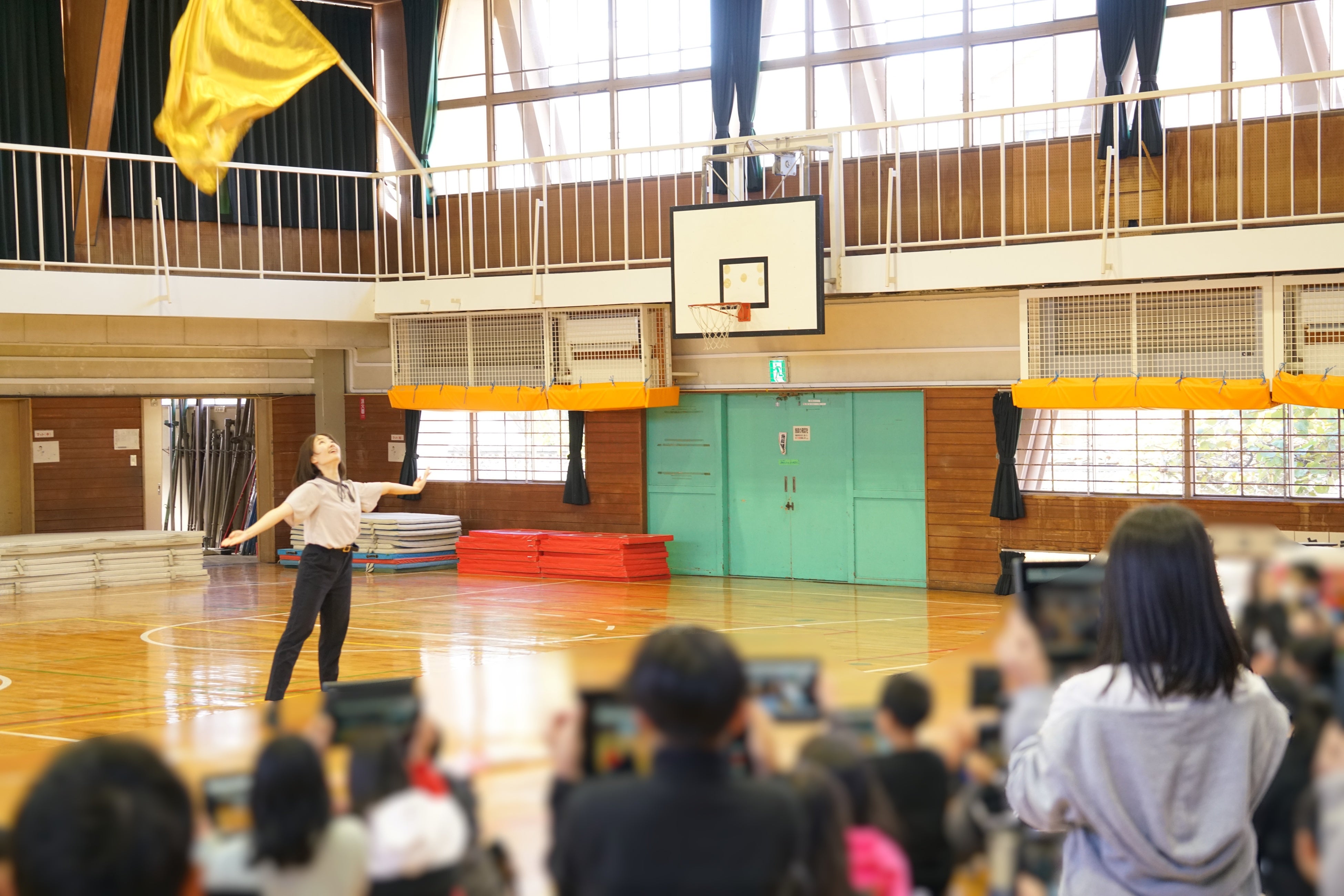 授業では、カラーガードの実演とともに、挑戦することをためらってしまい、現実的な夢を掲げてしまう小学5年生に向けて「失敗は怖いことではない」「諦めずに続ければ必ず道は拓ける」というメッセージをお伝えいたします。
