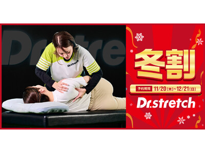 ストレッチ専門店『ドクターストレッチ』では、本格的な冬の到来に合わせ、日頃のご愛顧に感謝を込めた「冬割キャンペーン」を開催中です。プロのトレーナーが全身の深層筋へアプローチする人気の「肩甲骨はがし」をはじめとする全身のストレッチが、今だけの特別価格でご利用いただけます。