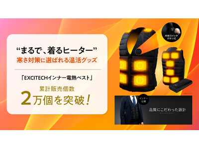 「本当に必要とされる商品を世界に流通させる」という理念のもと、数多くのベストセラー商品を世に送り出してきた株式会社Extage(大阪市中央区、代表取締役:野口拳大)は、現在発売中の温活グッズ「EXCITECH(エキサイテック)電熱インナーベスト」が、累計販売個数2万個を突破したことをお知らせします。