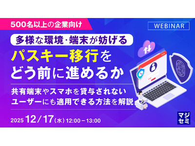 マジセミ株式会社は「【500名以上の企業向け】 多様な環境・端末が妨げるパスキー移行をどう前に進めるか」というテーマのウェビナーを開催します。