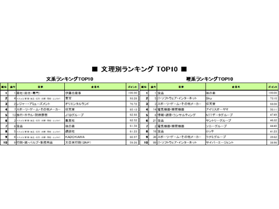(1)文系1位は伊藤忠商事。トップ10に娯楽関連企業ずらり。「マスコミ」がトップ50の15社占める
