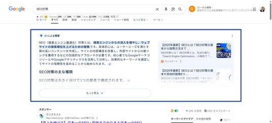 AI Overviewsとは、Google検索の結果画面上部に表示される、AIが生成した回答の概要です。ユーザーの検索意図に対して、複数のWebサイトから情報を引用し、AIが統合的な回答を提示します。従来の「検索順位1位」よりも目立つ位置に表示されるため、AI Overviewsに引用されることが、新たなSEO戦略の重要指標となっています。