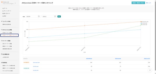 ~「AI検索時代」に対応した新機能、AIOに採用されているキーワード数を月次で自動集計。競合サイトとの比較も可能に~