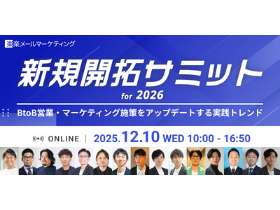 株式会社ラクス(本社:東京都渋谷区、代表取締役:中村 崇則)が提供するメールマーケティングサービス「楽楽メールマーケティング」は、2025年12月10日(水)10時から、BtoBの営業・マーケティングのご担当者様向けにオンラインカンファレンス「新規開拓サミット for 2026 ~BtoB営業・マーケティング施策をアップデートする実践トレンド~」を開催いたします。