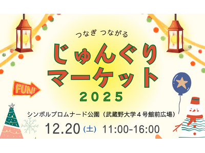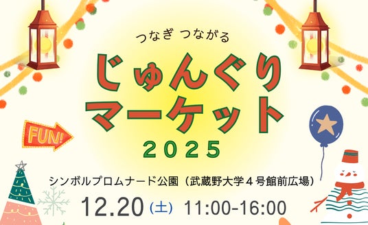 武蔵野大学工学部サステナビリティ学科(東京都江東区、学長:小西 聖子)は2025年12月20日(土)に、シンボルプロムナード公園 (有明キャンパス4号館前広場)で「じゅんぐりマーケット」を開催します。