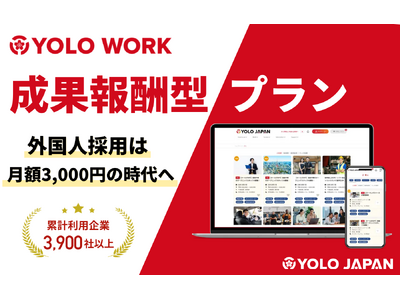 243の国や地域を出身とする35万人以上の在留外国人が登録している日本最大級のメディアを運営する株式会社YOLO JAPAN(代表取締役:加地太祐、大阪本社:大阪市浪速区、以下「YOLO JAPAN」)は、外国人求人掲載サービス「ヨロワーク」において、新しい「成果報酬型プラン」の提供を開始いたしました。