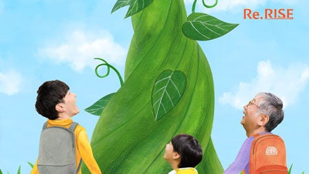 太陽光パネルの寿命や保証を気にする母のため、家族が見つけたのは雲の上まで伸びる大きな豆の木。その先で見つけたのは、30年保証になった「Re.RISE-NBC」でした。