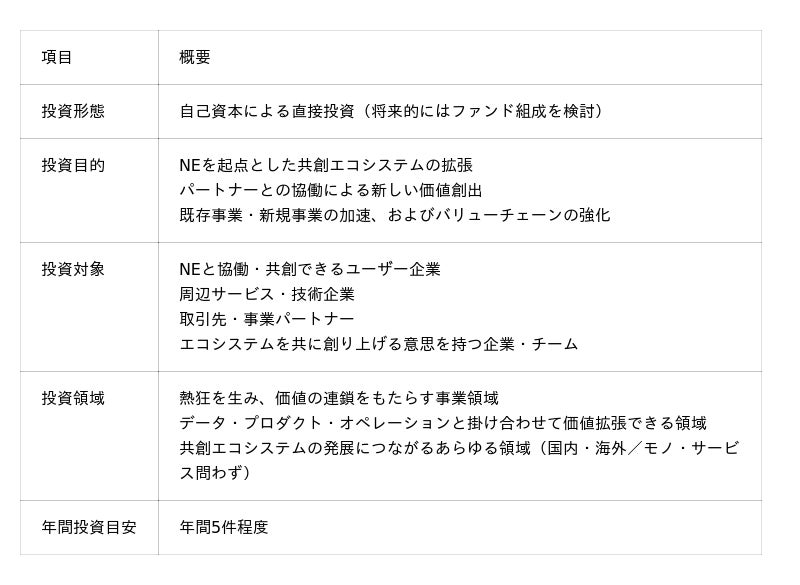 こうした市場環境の変化の中で、NEが掲げるパーパスである「コマースに熱狂を。」を実現していくためには、自社の枠を超え、外部の革新的な技術やビジネスモデルとの共創が不可欠であると判断しました。