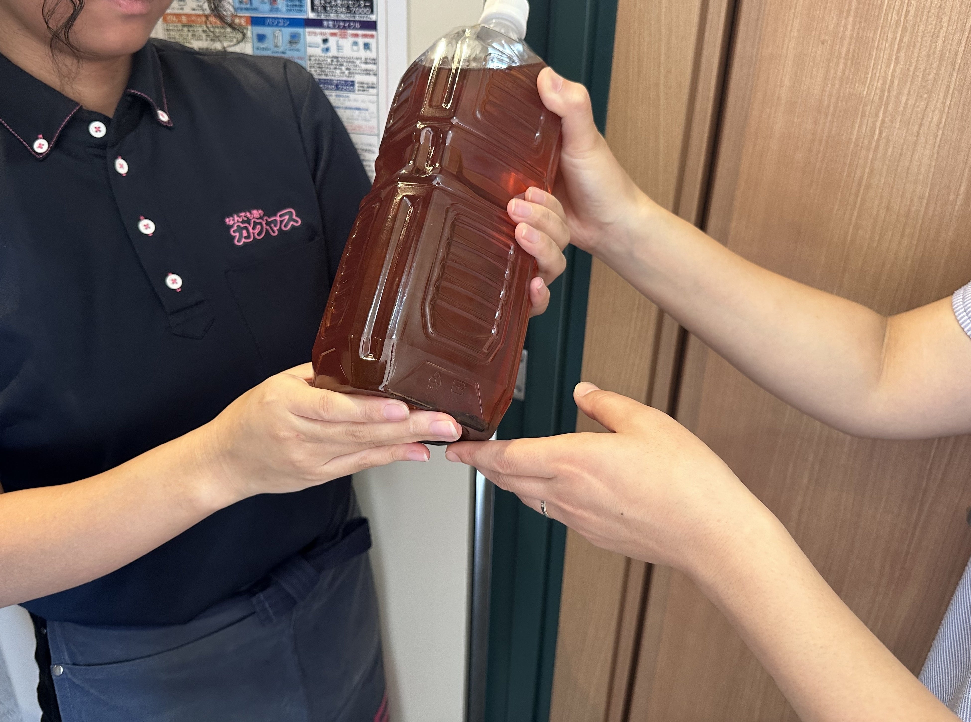 2024年6月より、首都圏・関西・九州の営業エリアにて、廃食用油の回収サービスを行っています。飲食店やご家庭から出る廃食用油を、店頭または配達時に回収いたします。回収した廃食用油は、本プロジェクトに参加する株式会社レボインターナショナルを通じてSAF等へ再資源化されます。