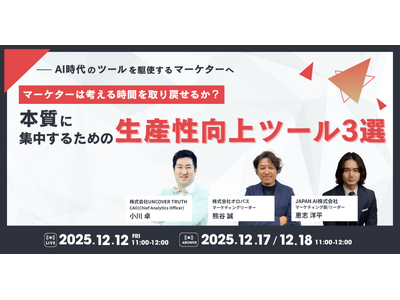 12月12日(金)に無料のオンラインセミナー『<AI時代のツールを駆使するマーケターへ> マーケターは“考える時間”を取り戻せるか?本質に集中するための生産性向上ツール3選』を開催します。