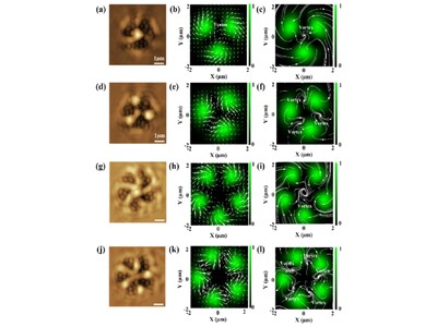 千葉大学大学院工学研究院の尾松 孝茂教授、千葉大学分子キラリティー研究センターの平山 颯紀特任助教と、東北大学大学院工学研究科の小野 円佳教授、木崎 和郎助教、赵 君婕 (Zhao Junjie) 学振外国人特別研究員と北海道大学電子科学研究所の田口 敦清准教授の研究チームは、光の波面に複数の渦が同時に存在する多重光渦(注1,2)を物質に転写して構造として可視化することに成功しました。また光のスピン角運動量と軌道角運動量のベクトル合成(光のスピン軌道相互作用(注3))の効果により、渦の大きさや位置が大きく変化することを見出しました。
