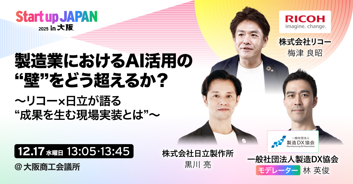 - セッションテーマ:製造業におけるAI活用の"壁"をどう超えるか?~リコー×日立が語る"成果を生む現場実装とは"~