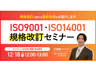 「ISO9001・ISO14001規格改訂セミナー」を開催します。2026年に予定されているISO9001・ISO14001の規格改訂について、先行情報を知りたい方や改訂に不安を感じている方に向けて、