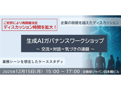 企業の多種多様なリスクマネジメント・コンサルティングサービスを提供するSOMPOリスクマネジメント株式会社は、前回2025年6月に開催しご好評いただいた「生成AIガバナンスワークショップ」を2025年12月15日(月)に再開催することをお知らせいたします。