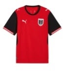 オーストリアのホームキットは、“ホーム”を感じさせる一着です。国の冒険心に根ざしたデザインで、ファンへの敬意を込めながら世界最大の舞台での戦いに備えています。鮮やかなレッドのボディにブラックの袖とショルダーを組み合わせ、袖口のさりげないレッドがクリーンでモダンな印象を演出。胸元にはオーストリア代表のエンブレムとホワイトのプーマロゴが並び、力強くパフォーマンスに特化した佇まいとなっています。