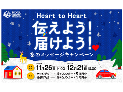 NEXCO西日本、阪神高速、JB本四高速、FM大阪の4社が進める高速道路での交通事故をゼロにするための危険運転撲滅プロジェクト「STOP! NAGARA DRIVING PROJECT(通称:SNDプロジェクト)」において、「Heart to Heart 伝えよう!届けよう!冬のSNDメッセージキャンペーン」を開催します。