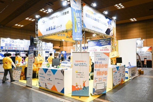 今回は、いえらぶGROUP・いえらぶパーク・阪神高速サービスの合同ブースを出展しました。黄色と青を基調とした視認性の高いデザインが来場者の目を引き、多くの方に足を運んでいただきました。