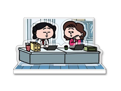えんむすのオフィスを再現した飾って楽しいアクリルジオラマ。各パーツを組み立てることで、奥行きと立体感が感じられる仕様です。