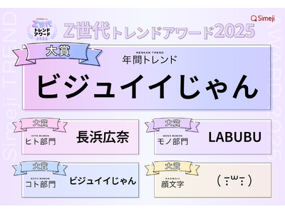 バイドゥ株式会社(本社:東京都港区、代表取締役社長:Feng Jiang)が提供するキーボードアプリ「Simeji」は、Z世代(2025年現在13~28歳)男女6,779名を対象に実施した「Simeji presents Z世代トレンドアワード2025」の結果を発表します。