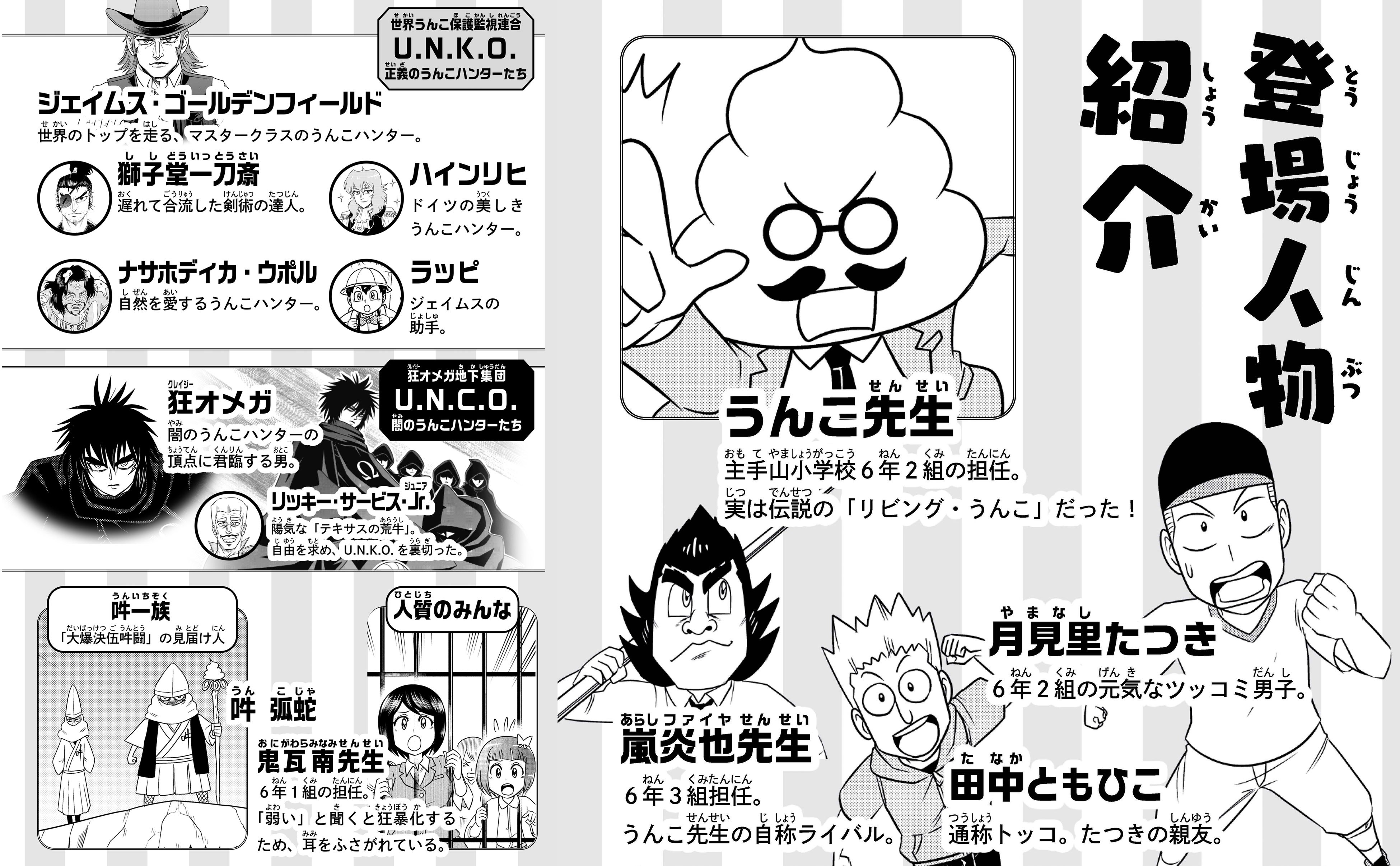 うんこ先生をめぐる頂上決戦「吽己紅羅泥衛闘(うんこぐらでぃえいと)」が開始され、シリーズ最大級のスケールで熱いバトルが展開される!